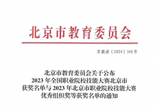 近日,北京市教育委员会公布2023年北京市职业院校技能大赛优秀组织奖名单,我院荣获2023年北京市职业院校技能大赛优秀组织奖。