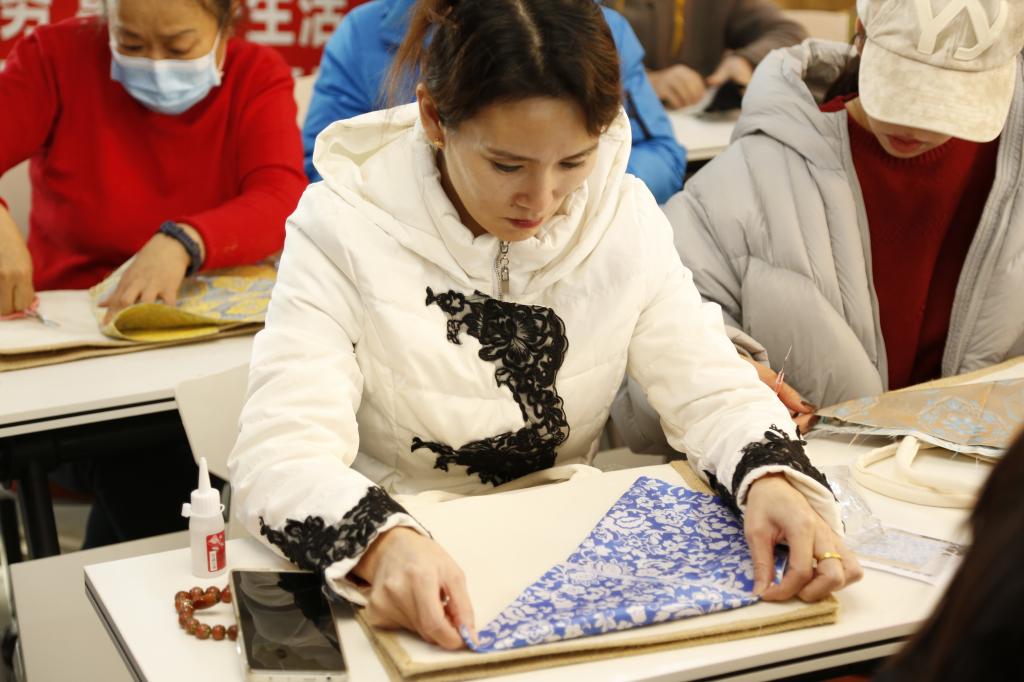 12月19日,学院联合北京银行昌平管辖行走进城南街道绿海家园社区,共同举办“京邻相伴 昌聚未来”主题系列活动之“易趣工坊”——非遗宋锦手工包制作活动。共有35名社区居民积极参与了此次活动。