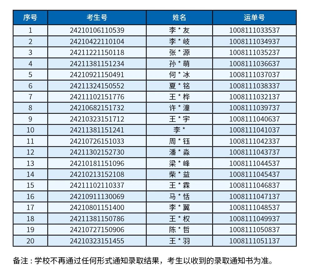 下一篇:最新寄送 | 2024年北京3+2转段、安徽、吉林、江西录取通知书运单号请查收!