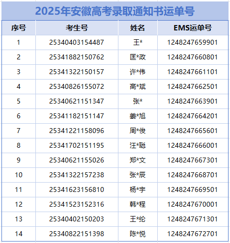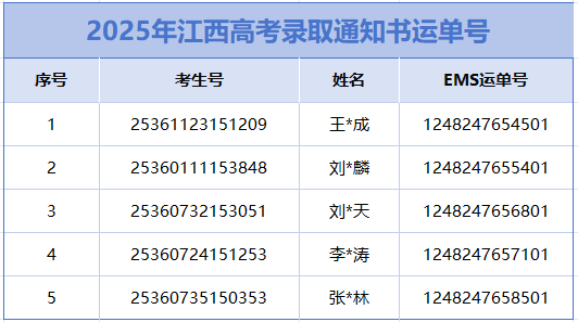 最近寄送 | 2025年江西、河南、安徽录取通知书单号请查收!