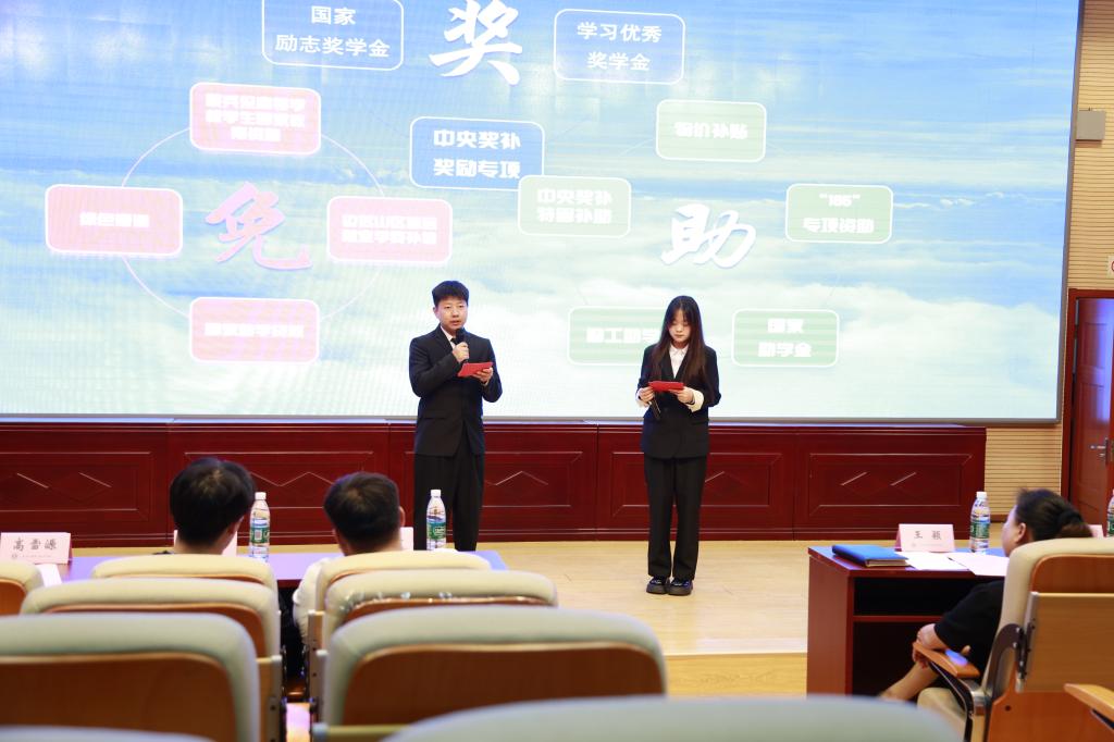 学生资助宣传大使刘子萌、赵子豪通过情景宣讲,全面解读学院三大类12项资助政策体系。从“激励性奖学金”到“保障性助学网”,从“学费减免补偿”到“勤工助学实践”,生动诠释了“不让一个学生因经济困难失学”的庄严承诺。