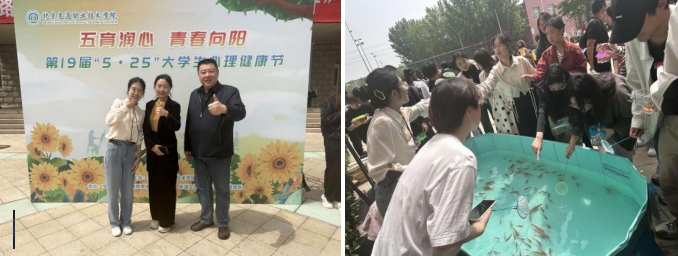 为深入贯彻落实教育部等十七部门关于《全面加强和改进新时代学生心理健康工作专项行动计划(2023—2025 年)》和北京市教育工作委员会《关于优化提升北京高校学生心理健康工作的行动方案(2023—2025年)》等文件要求,推动五育融合促进心理健康,进一步提升我院心理健康工作实效,提高大学生心理素质水平,同时为校庆营造浓厚校园文化氛围,4月25日中午,由学生处心理健康教育中心主办、心理健康协会承办的第19届“5·25”大学生心理健康节开幕式暨心理游园会在教一楼门前举行。本次活动以“五育润心,青春向阳”为主题,旨在帮助同学们放松心情、释放压力、补充精神能量,引发大学生对心理健康的关注,传播青春正能量。