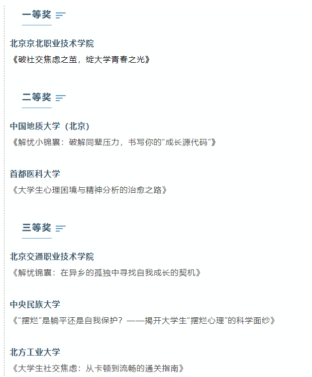 为全面贯彻《全面加强和改进新时代学生心理健康工作专项行动计划》中 “五育并举促进学生心理健康” 的重要要求,通过开展心理知识竞赛和特色心理科普宣传活动充分发挥学生的创新创造能力,广泛普及心理健康知识,激发大学生学习心理知识的热情,心理健康教育中心积极组织学生参与了 2025 年首都高校大学生心理健康季 “悦心知旅 —心理健康知识普及活动”。我院管理系王正炎同学从51所高校参与者中脱颖而出,荣获首都大学生心理健康季“悦心知旅”心理健康知识普及活动三等奖 。