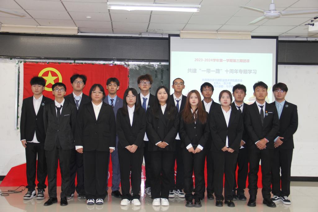 团课在激昂的共青团团歌中缓缓拉开了序幕。通过学习,全体同学了解了“一带一路”的历史背景,了解了陆上丝绸之路与海上丝绸之路的起源和演变过程,并通过团课视频直观的感受到了“一带一路”倡议十年来的成绩单。每位同学都全神贯注认真学习,提高对“一带一路”的认知。“一带一路”倡议十周年让同学们深刻地认识到,每个人都生活在一个紧密相连的世界,各国之间的合作与发展是不可分割的,这些成果积淀了以和平合作、开放包容、互学互鉴、互利共赢为核心的丝路精神。