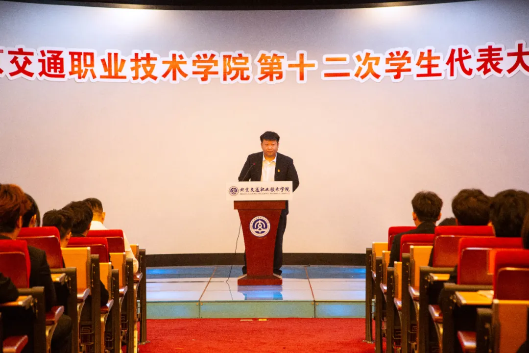 随后,大会先后审议并通过了《第十二次学生代表大会提案及筹备工作报告》、《第十二次学生代表大会代表资格审查报告》。吴佳益作题为《志存高远担使命 实干笃行谱新篇》工作报告,全面回顾过去一年工作:通过“团学干部思想交流会”等活动深化理论学习,组织“一二九合唱比赛”“体育文化节”“辩论赛”等品牌活动丰富校园生活,依托“青春交院”公众号宣传在校学子的点滴,在学院四十周年办学成果展示系列活动中展现青年担当,报告明确了学院学生会未来的工作方向,将从深化主题教育、助力学风建设、加强自身建设等方面发力,打造更具凝聚力的学生组织。
