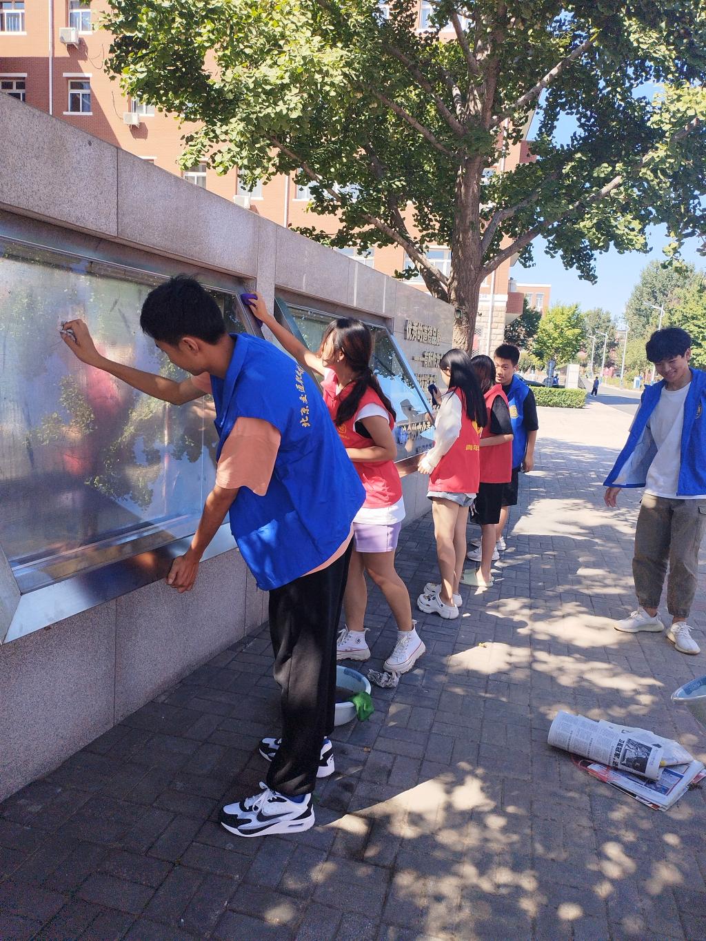 “绿色校园共建 助力迎新入学”我院开展橱窗宣传栏清洁志愿服务
