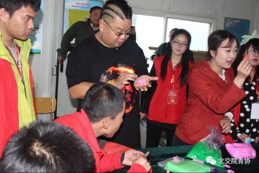 随着学院践行“学总书记讲话做合格共青团员”教育主题实践活动的开展,为更好发挥团员力量和志愿者服务精神,在第二十六个全国助残日来临之际,宣传学雷锋精神,ky电竞馆青年志愿者协会来到昌平区城南温馨家园康复站,与那里的残障人员度过了一个快乐的日子,知名艺人有“舞王”之称的王迪老师也受邀参与了活动。本次活动,也受到了昌平电视台和报社相关媒体的高度关注。
