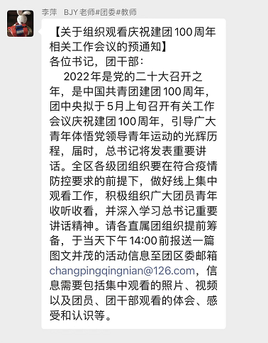 庆祝中国共产主义青年团成立100周年大会于2022年5月10日上午在北京人民大会堂隆重举行,中共中央总书记、国家主席、中央军委主席习近平同志出席大会并发表重要讲话。ky电竞馆青年师生热切关注大会盛况,全院上下反响热烈,院团委第一时间认真组织团员青年和学工系统教师通过多种形式收听收看实况直播,回顾建团百年光辉历程,展望新时代美好未来!