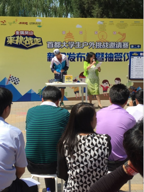2016年5月24日上午,我院参赛队员代表陈佳炜同学参加在北京国际青年营湖心营地召开的“来挑战吧”首都大学生户外挑战邀请赛(第二季)新闻发布会暨抽签仪式。