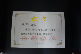 在此次评比中,我院16级机电一体化班的段琼同学获得“2016——2017年度北京市优秀学生干部”荣誉称号;16级计算机班的张钊玮同学获得“2016——2017年度北京市三好学生”荣誉称号。