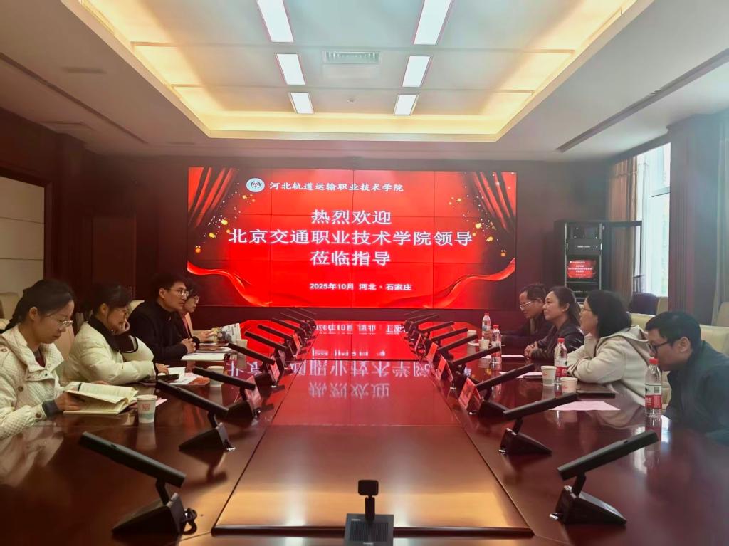 2025年10月23日下午,我院轨道交通系主任罗锦丽、信号技术专业主任崔慧珊、专任教师张路及实训管理教师李传松一行四人赴河北轨道运输职业技术学院城轨学院,开展调研与经验交流。