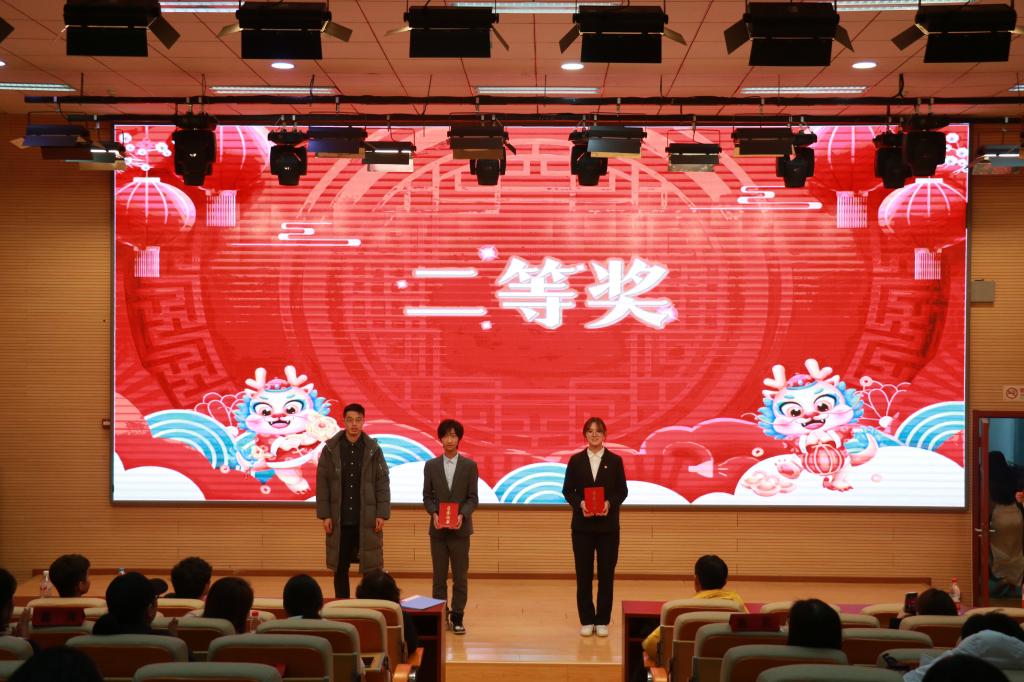 在轨道交通系党支部书记黄亚楠老师的新年总结讲话中,轨道交通系2024年联欢会暨活动闭幕式颁奖典礼落下帷幕,最后学院领导老师,演职人员和工作人员上台合影留念。