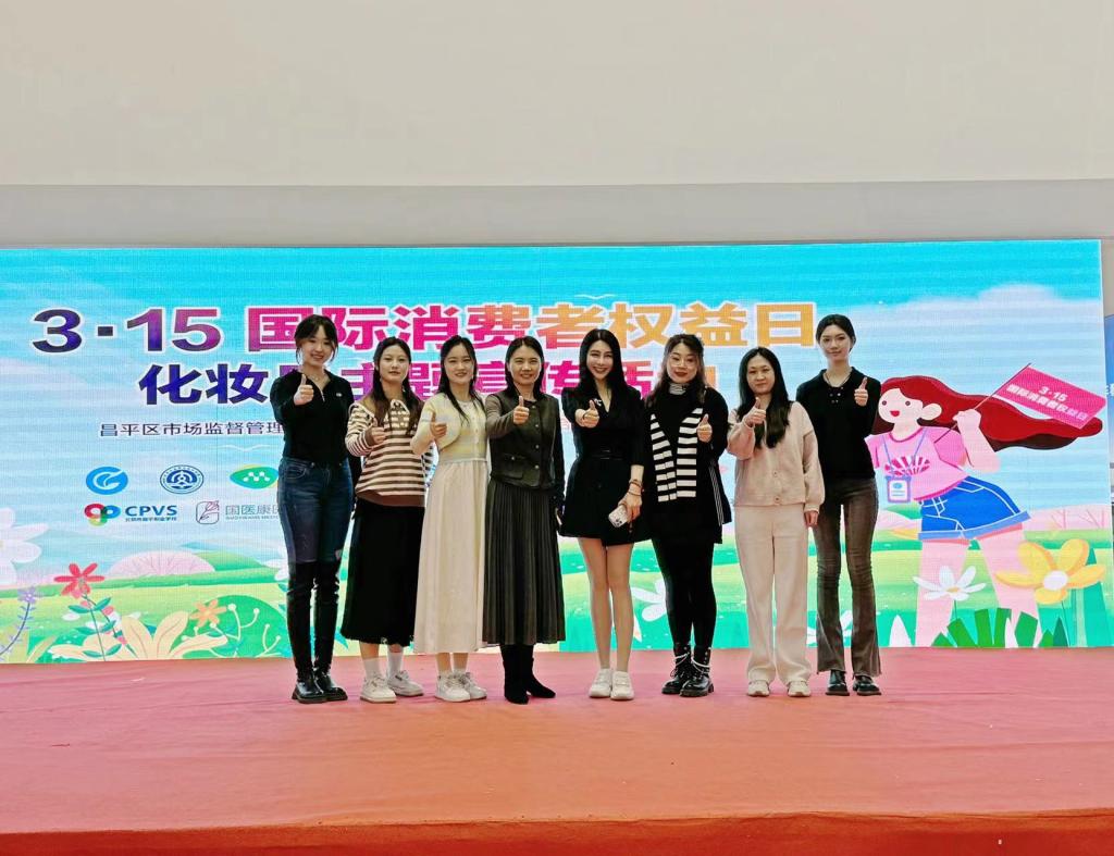 2024年3月13日下午,为进一步做好消费者权益保护,提升消费者美丽健康素养,为消费者营造安全放心的化妆品消费环境,北京市昌平区市场监督管理局、昌平区商业企业联合会及商业企业联合会美丽健康产业专业委员会在乐多港万达广场隆重举行“315国际消费者权益日”暨“美丽与健康”主题宣传活动。我院管理系主任陈晓燕、管理系教师高润、赵鑫飞、管理系学生张俊敏、李晨露、李欣然、宋子羽参加了此次活动。